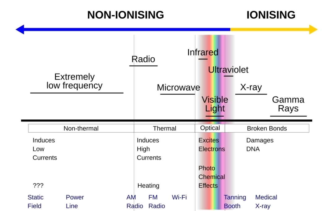 FYI, radio waves are not ionizing. Neither are microwaves.