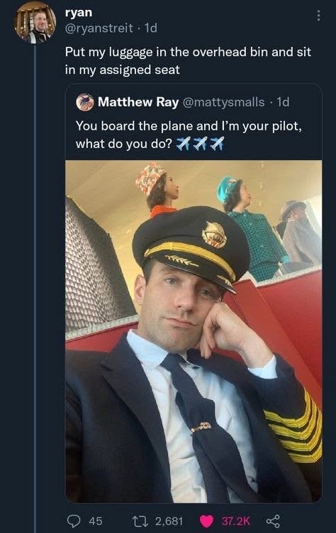 That looks like a pilot that will lower the oxygen masks just for funsies.