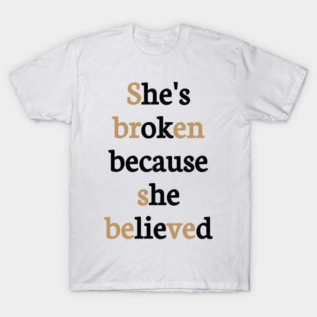 She’s broken because she believed.It seems like the 2 things would be “he’s okay because she believed” and “she’s broken because he lied”. Standard pithy religious nonsense. But they couldn’t work it out and just made a hash of it.