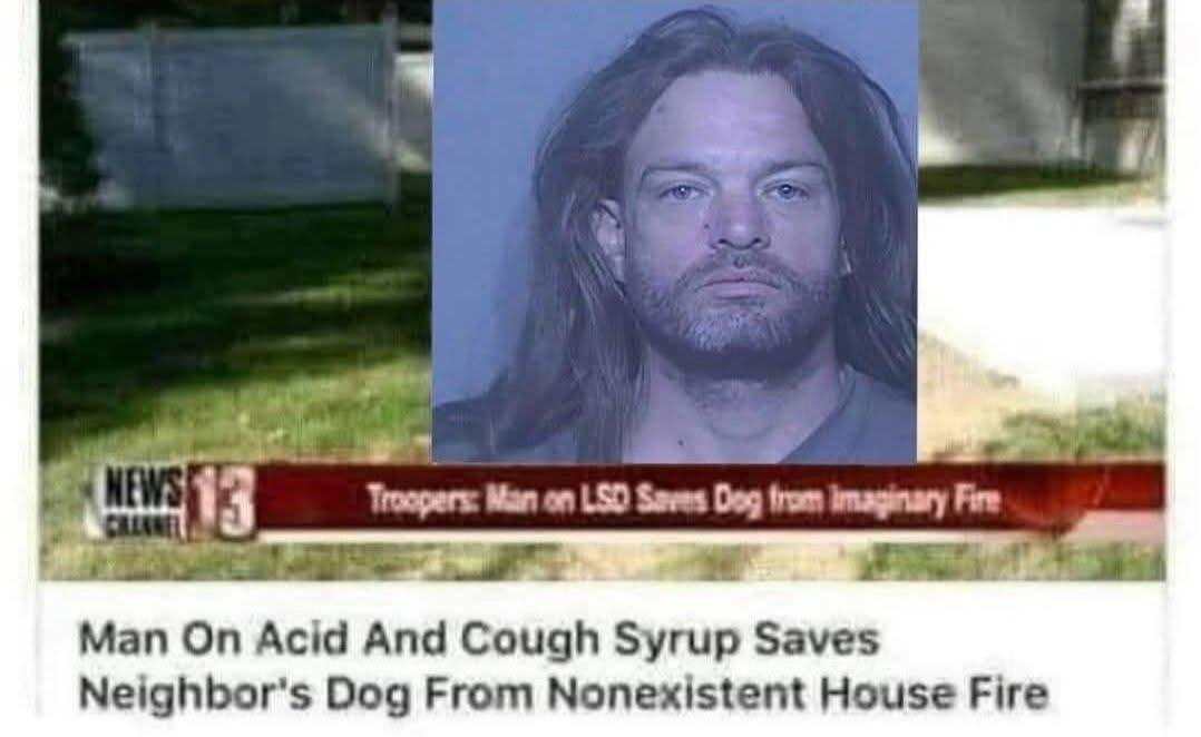 I didnt know he was driving. It also sounds like he just drove through a fence to save a dog. Still a weird hilarious story.