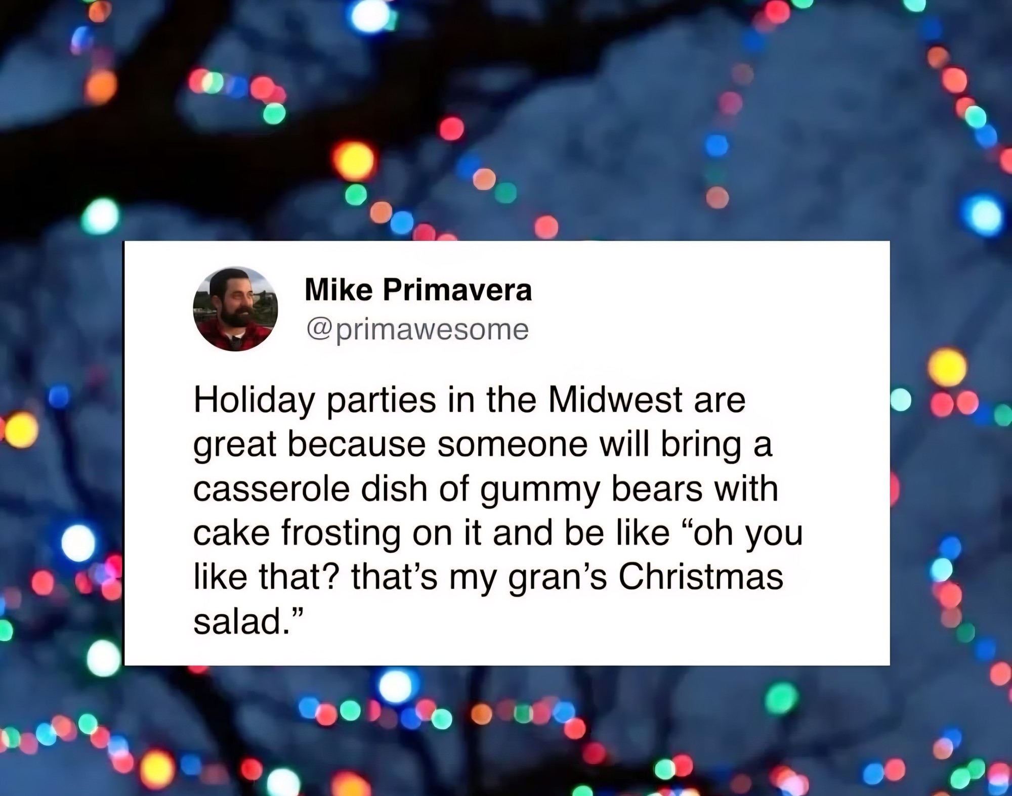 I’ve lived my entire life in the South, but growing up we’d occasionally visit extended family in the Midwest for a holiday. Regarding holiday meals, what the fuck is wrong with you people