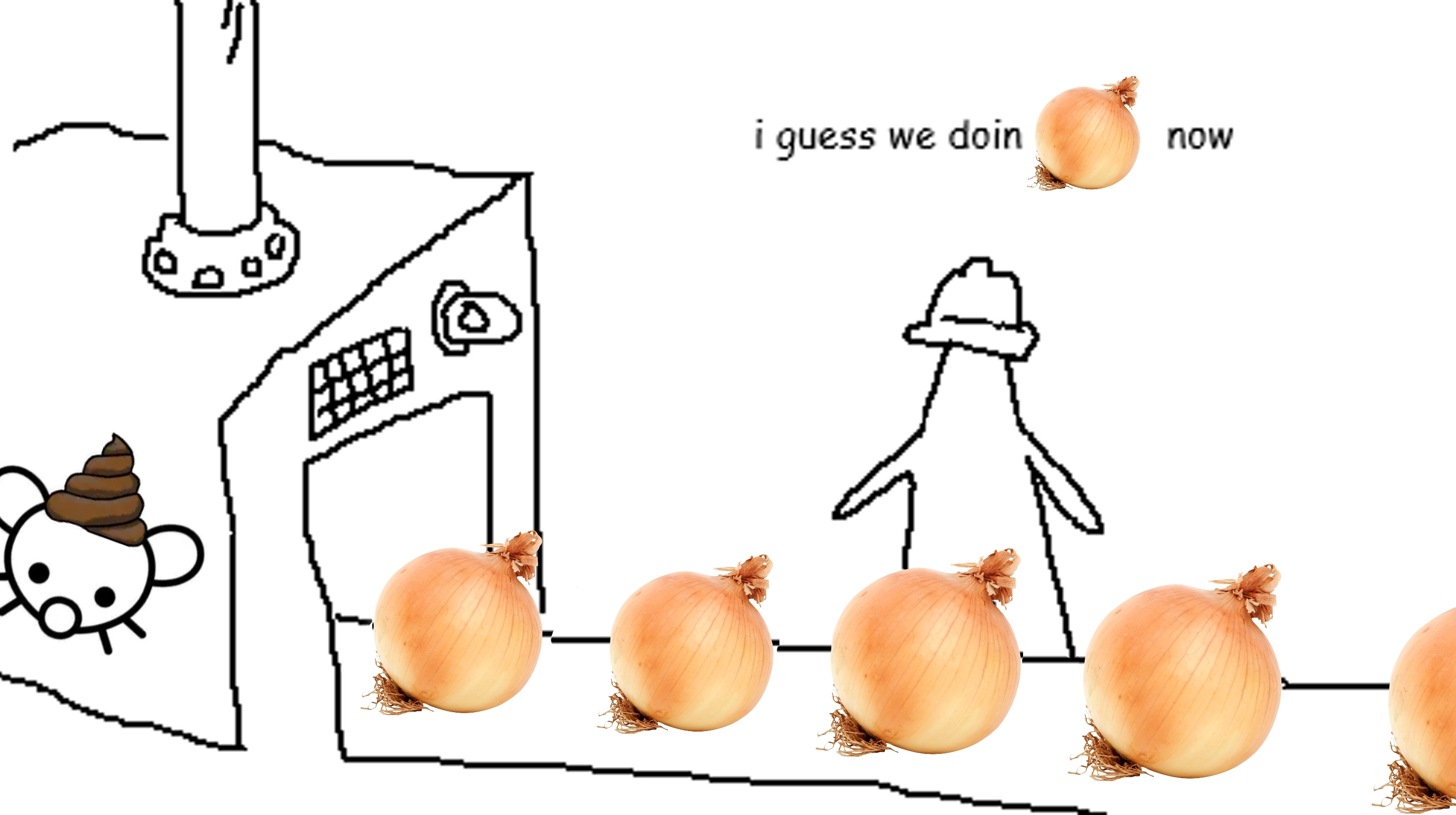 Can someone make that factory meme with the lil guy saying “I guess we doin onions now” please? I’m lazy
