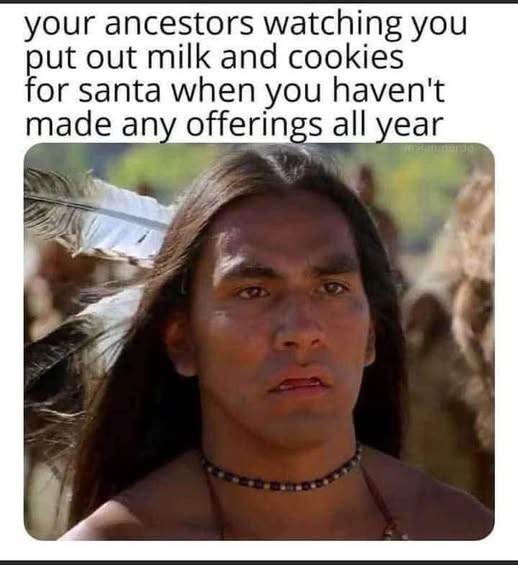As a native American. This meme is idiotic. Maybe choose a Viking or a pagan or sort that would be making offerings.