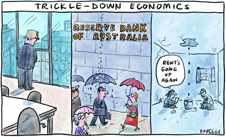 Reaganomics or it’s other name “trickle down” economics is what you want to start looking into.