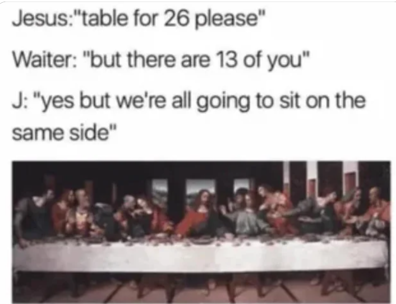 Mickey7@lemmy.world to memes@lemmy.world · 5 days agoYou never understood why they all sat on the same side, till nowimagemessage-square17linkfedilinkarrow-up1449arrow-down18