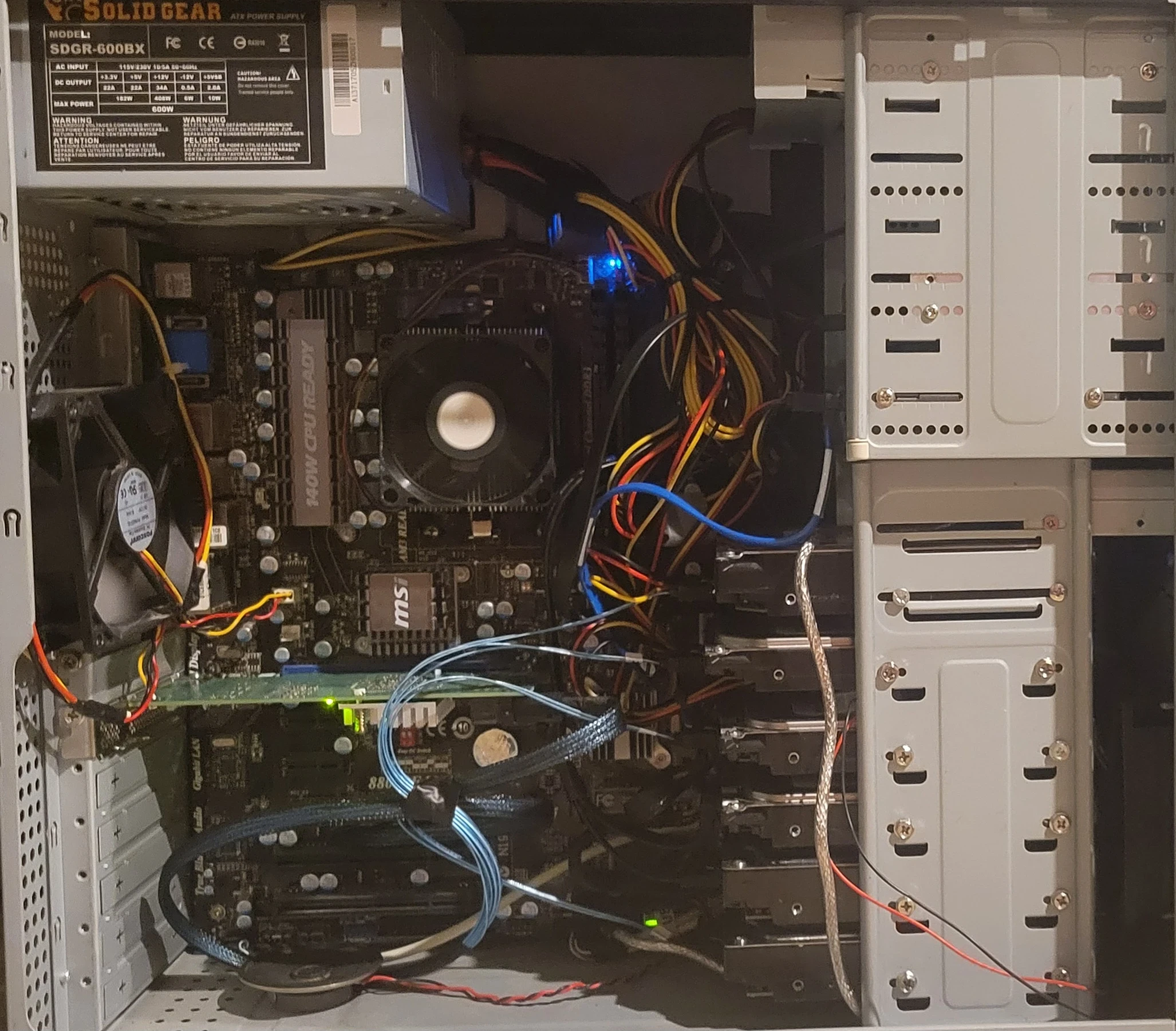 I am running one SAS card and 16 GB of DDR 3. Since the attached image I have taken pics of the serial numbers and labeled the drives.