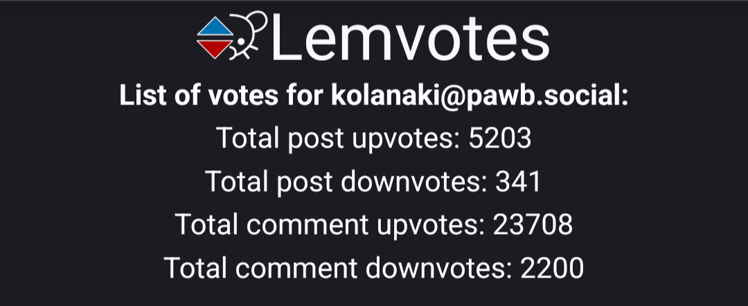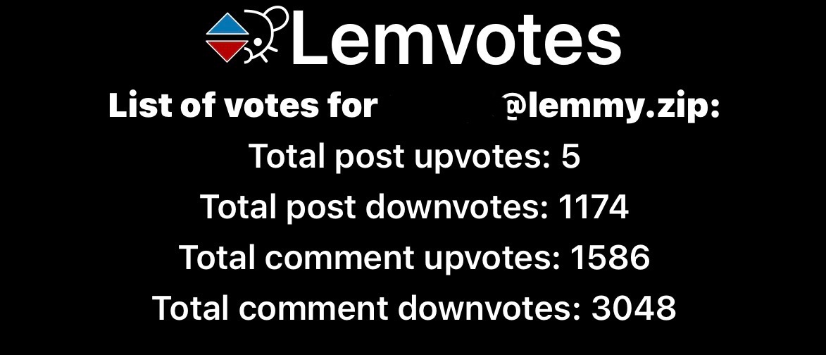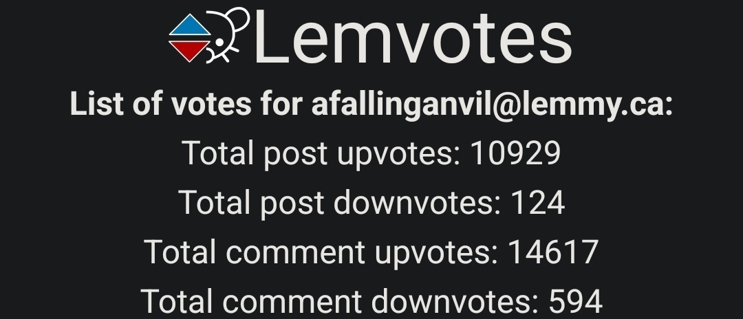 Just wanted to put that out there that there might be other legitimate users that have wildly disproportionate voting numbers and that it might not be malicious or careless in nature. I don’t know if Lemmy ignores them like Reddit (supposedly?) does, but I’ve never mass voted from a user’s history. It’s only from comments and posts that were presented to me during my normal browsing.