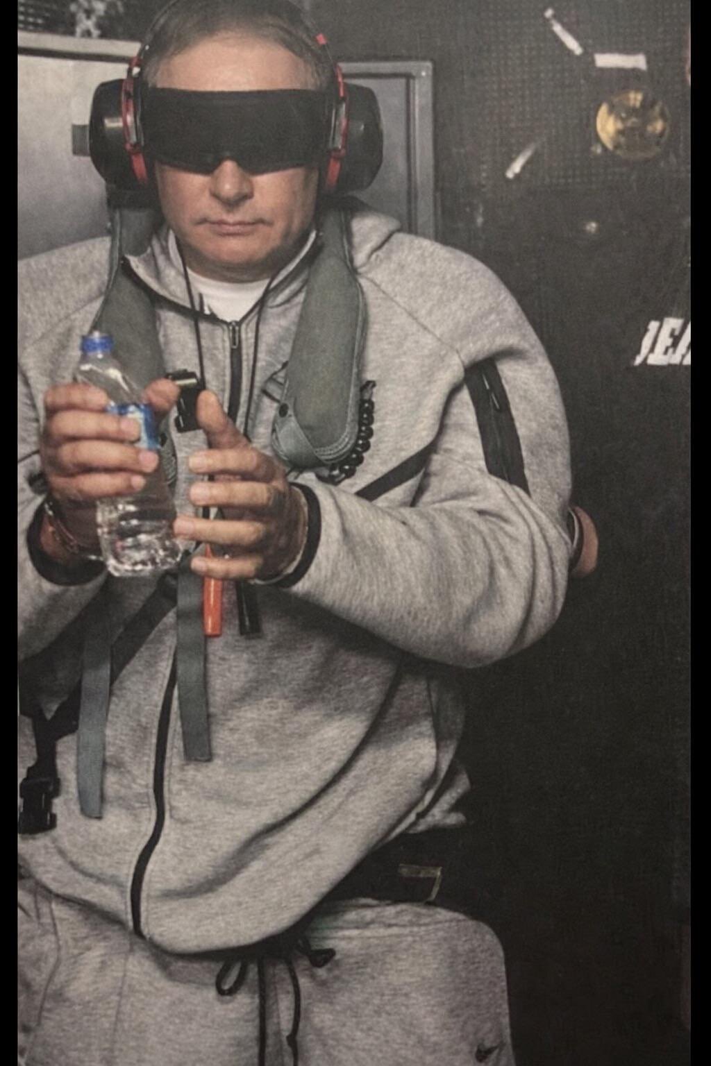 The guy with the mustache is Venezuela‘s (former) president Nicolas Maduro, photographed during his abduction by the US Navy. The one I posted is an edit that is meant to show Putin instead.