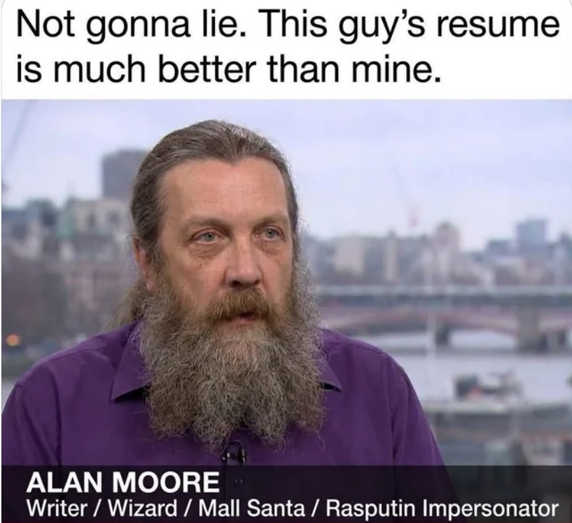 Alan Moore lives in a castle and actively hates the world. He’s my role model.
