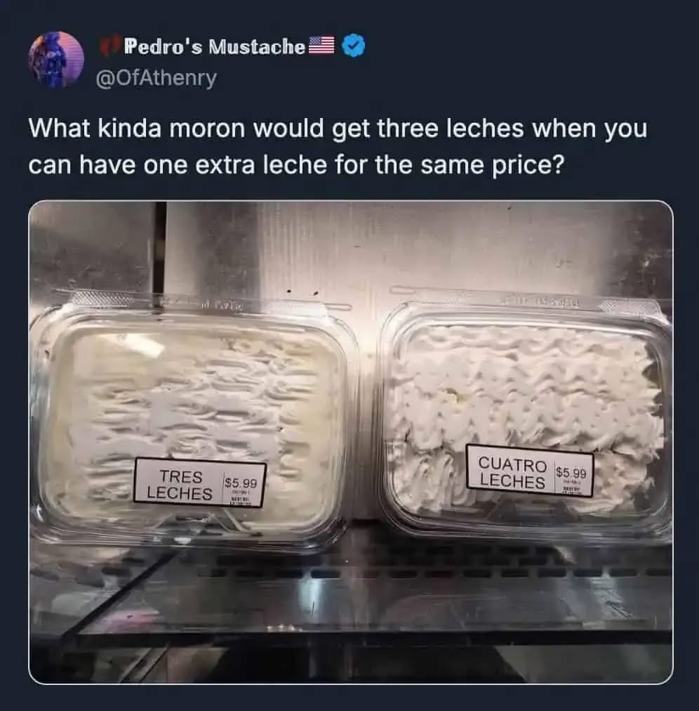 minus-squareoni ᓚᘏᗢ@lemmy.worldlinkfedilinkarrow-up15·12 days agoIs three leches a thing outside of Mexico?