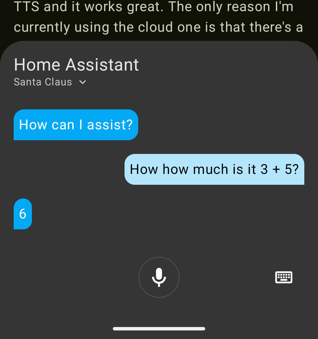 The one thing that made it great was the addition of the LLM. With it I don’t have to remember the exact names of devices or the correct phrasing to get HA to do what I want. It also allows for multiple actions in a single instruction. Since it’s an LLM you could also ask it to do LLM things. Like give you a semi-accurate fact or do basic math wrong: